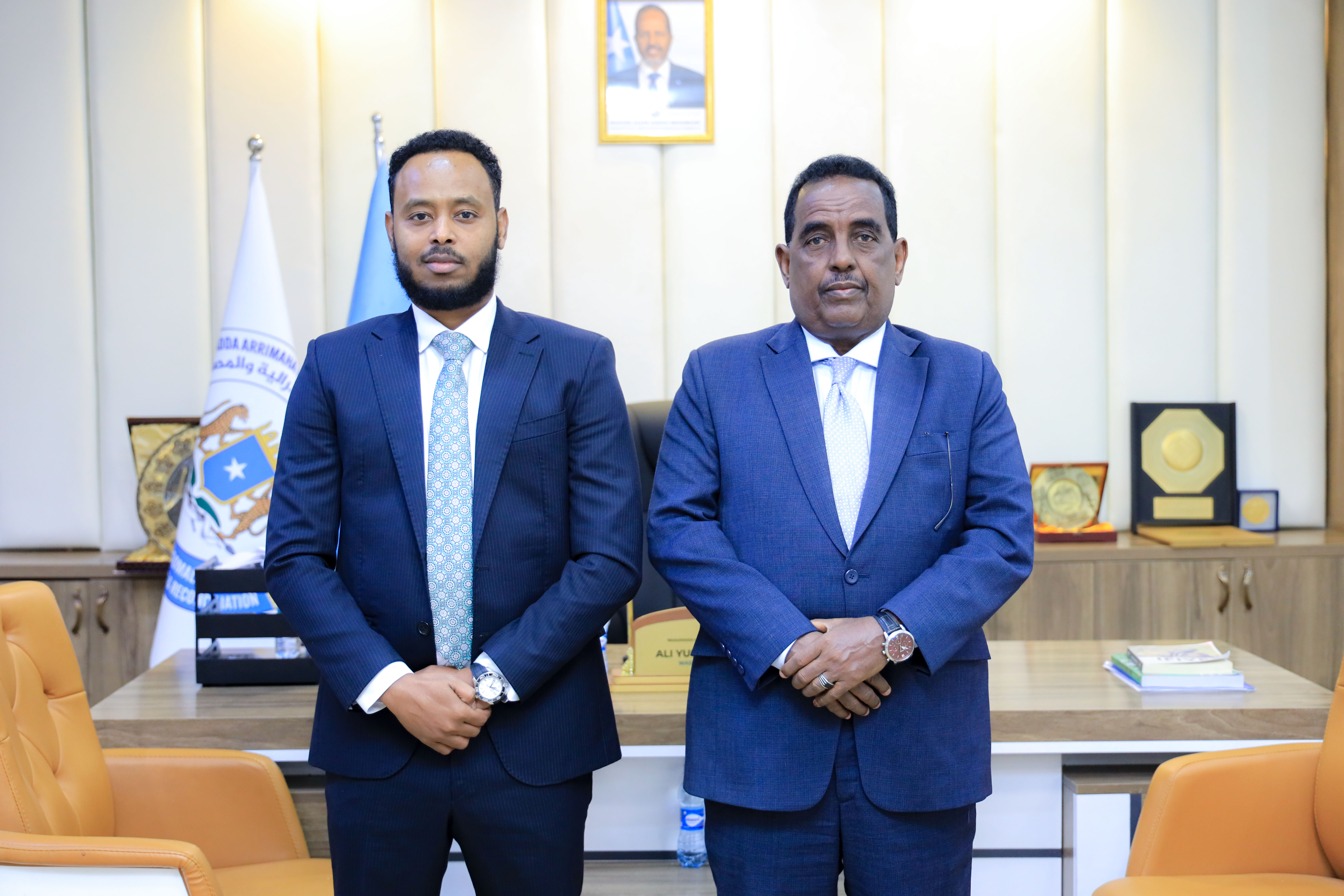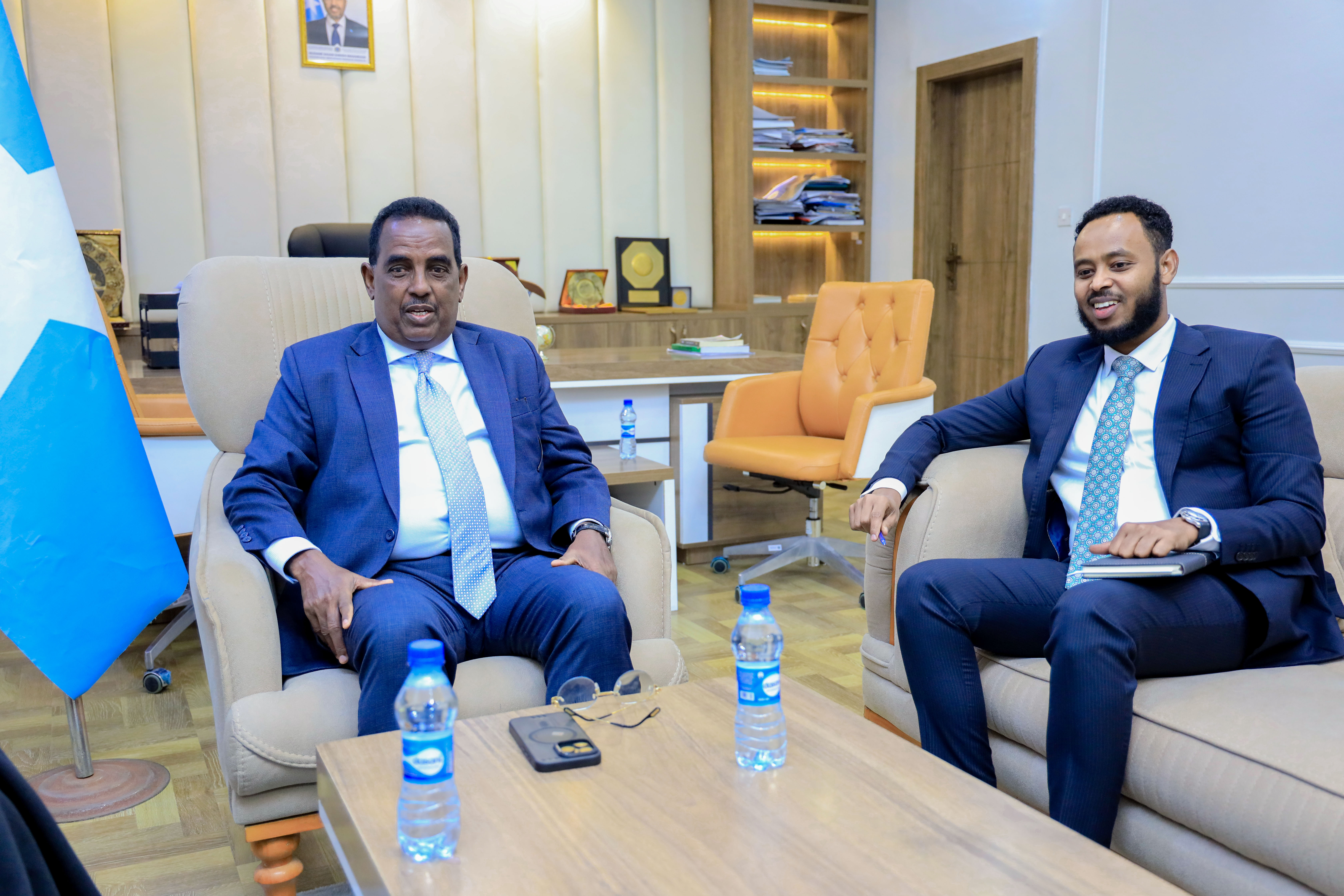 Muqdisho 05 Dec 2025; Wasiirka Wasaaradda Arrimaha Gudaha, Federaalka iyo Dib u heshiisiinta XFS mudane Cali Yuusuf Cali ( Xoosh) ayaa kulankiisii ugu horreeyay la qaatay Agaasimaha Guud ee cusub, Mudane Cabdulqaadir Cilmi Cali (Cabdul).