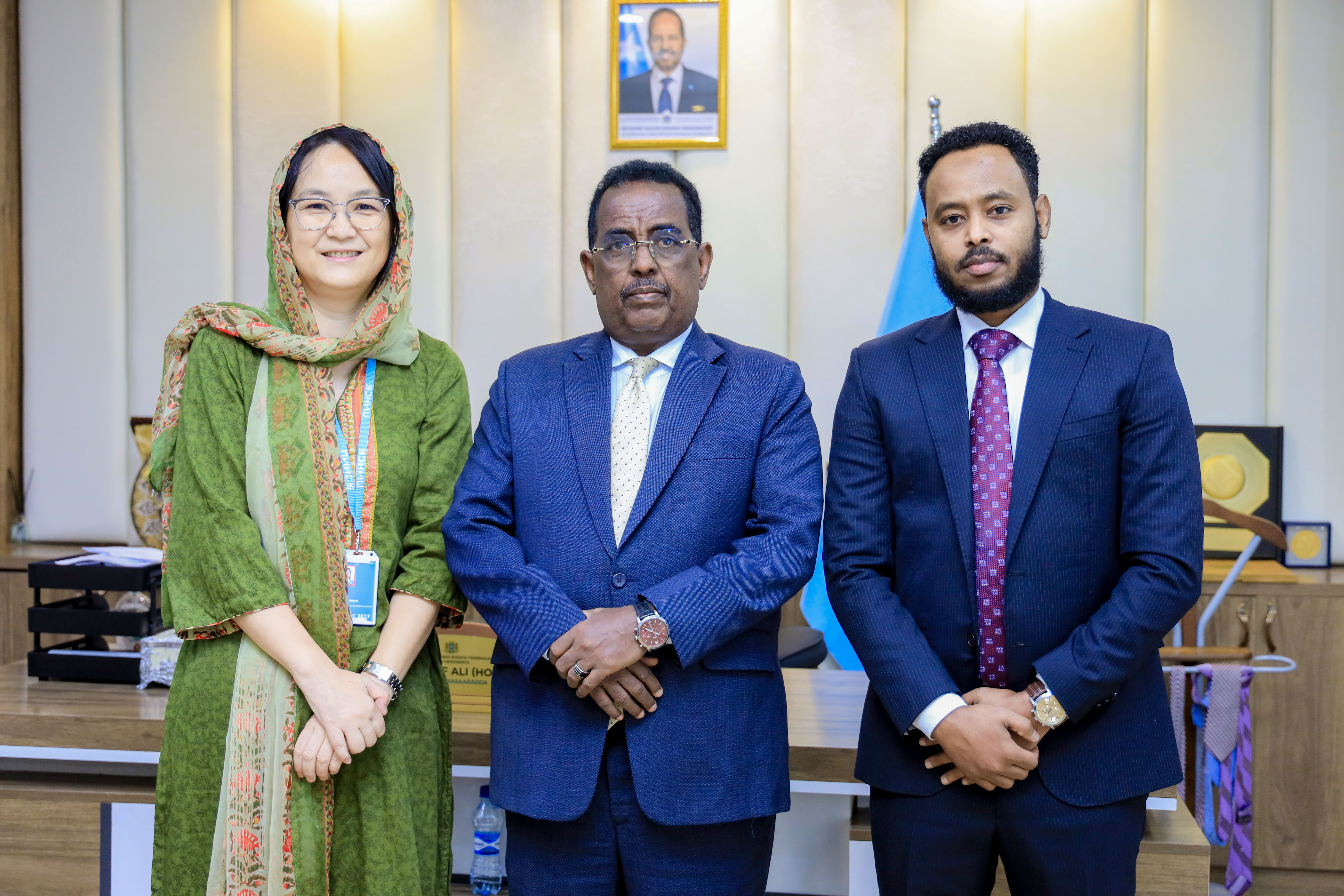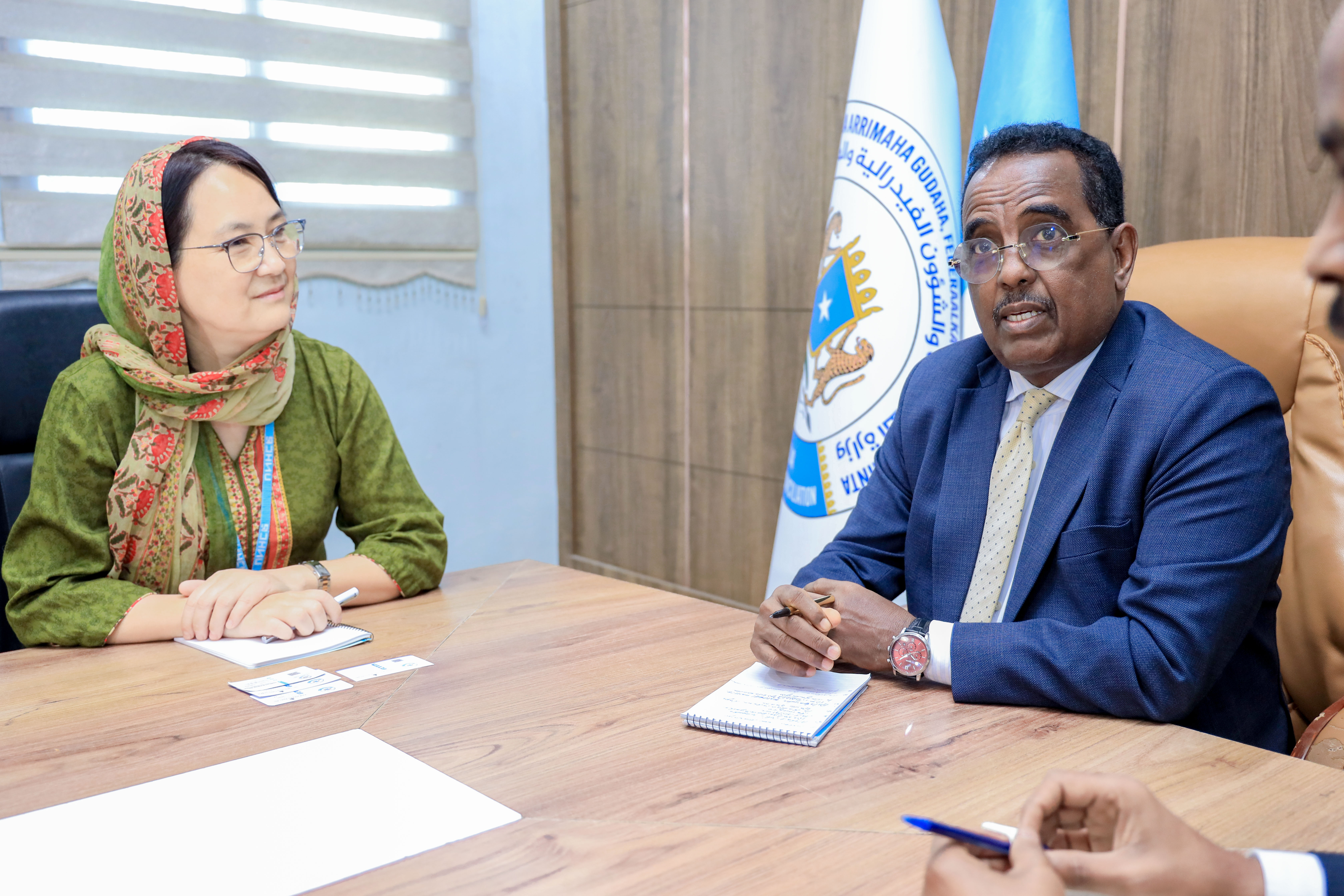 Muqdisho 11 Jan 2025; Wasiirka Wasaaradda Arrimaha Gudaha, Federaalka iyo Dib u heshiisiinta XFS Xildhibaan Cali Yuusuf Cali (Xoosh) ayaa la kulmay Madaxa cusub ee UNHCR Soomaaliya Mrs. Jong Song iyada oo laga wada hadlay xoojinta iskaashiga ku saabsan Dal-laaweyaasha, Barakaca iyo xalalkawaara