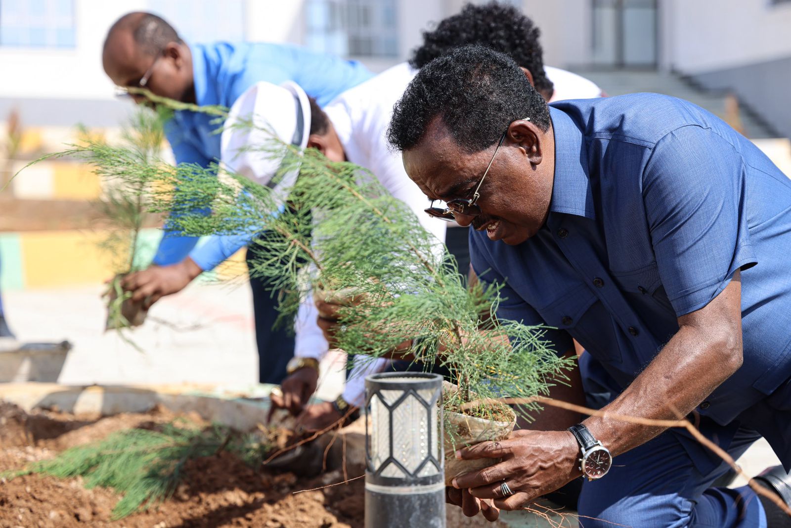 Before the doors of the new headquarters officially open, the leadership and staff of the Ministry of Interior, Federal Affairs and Reconciliation came together to plant trees in the compound.