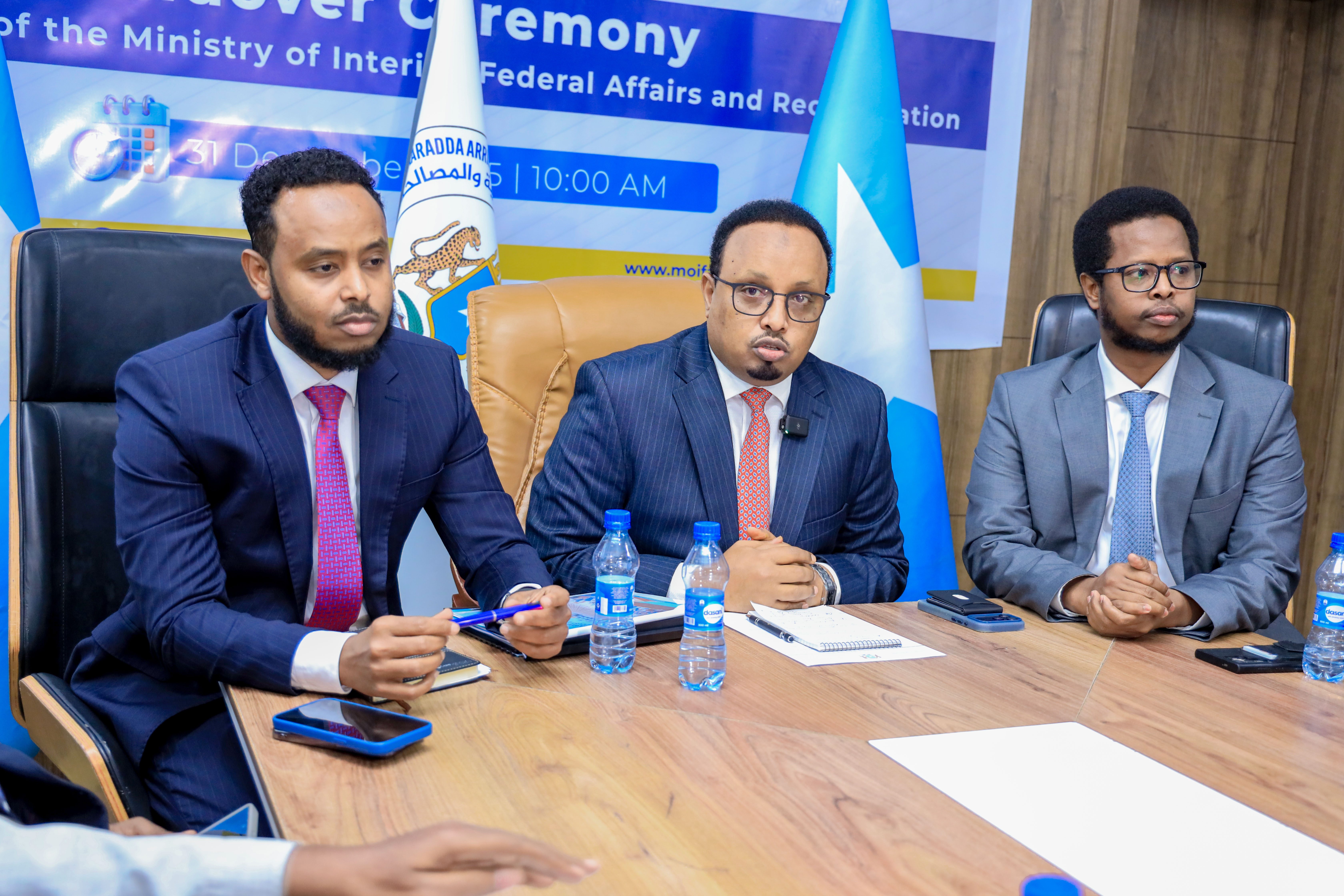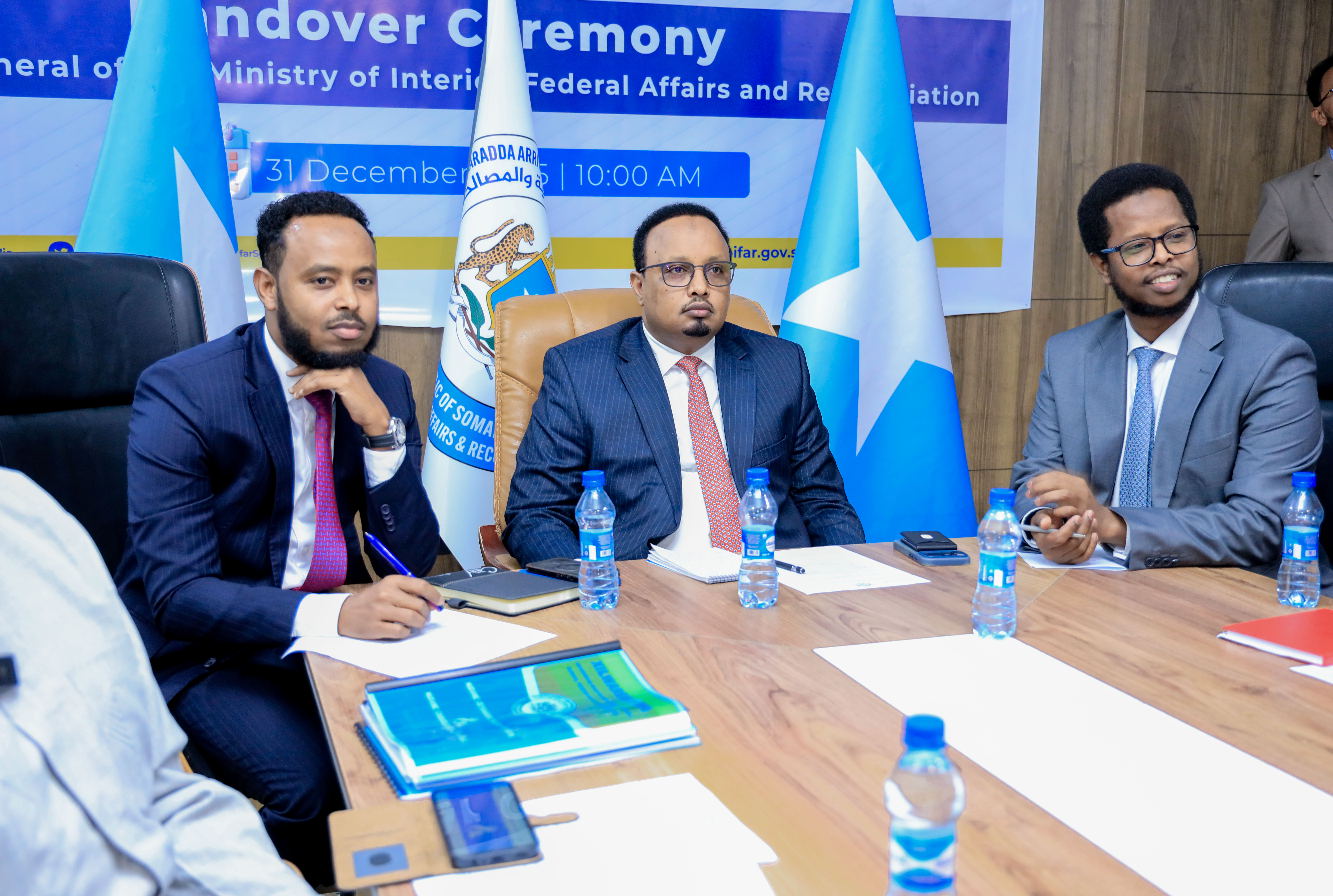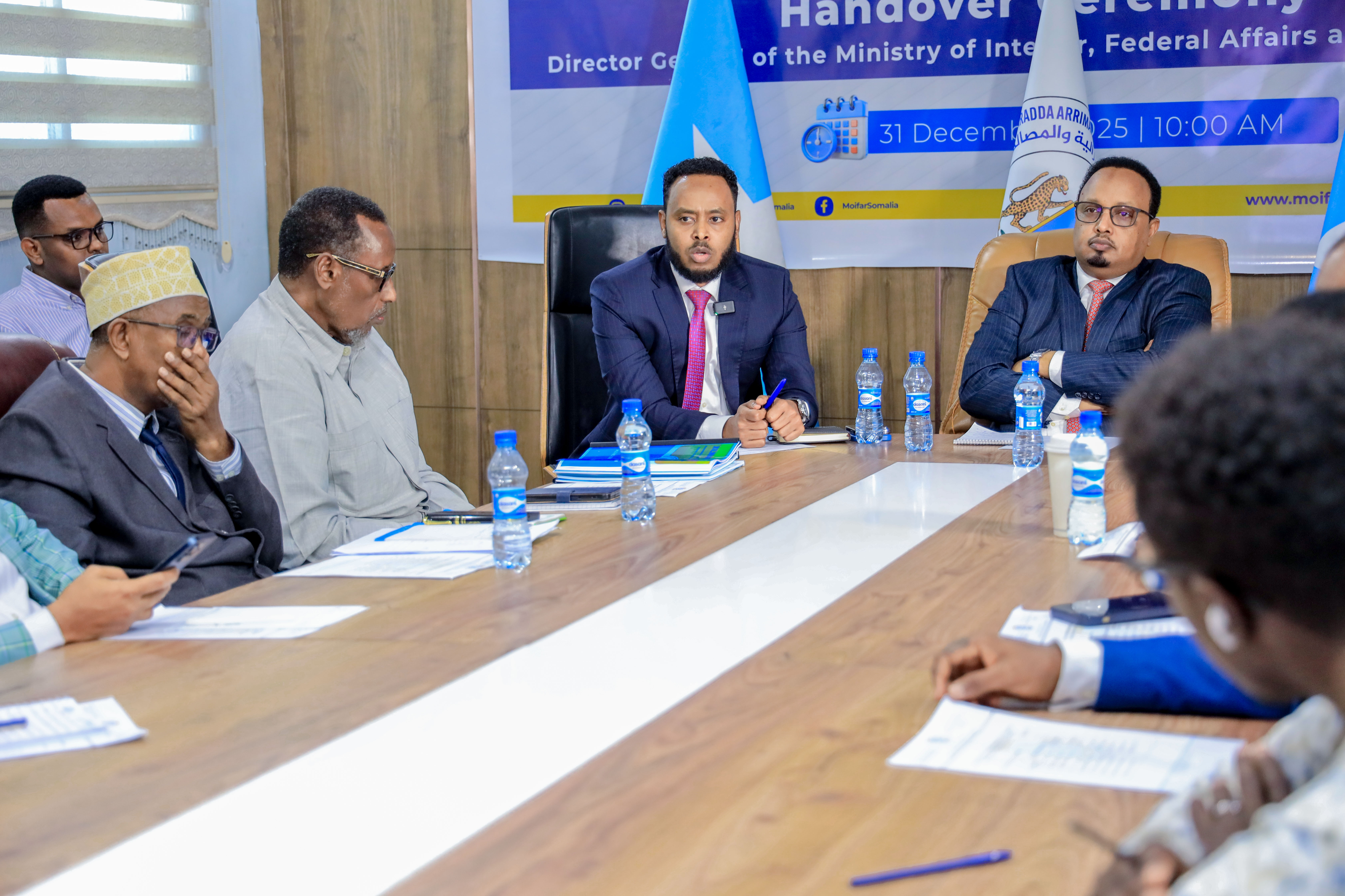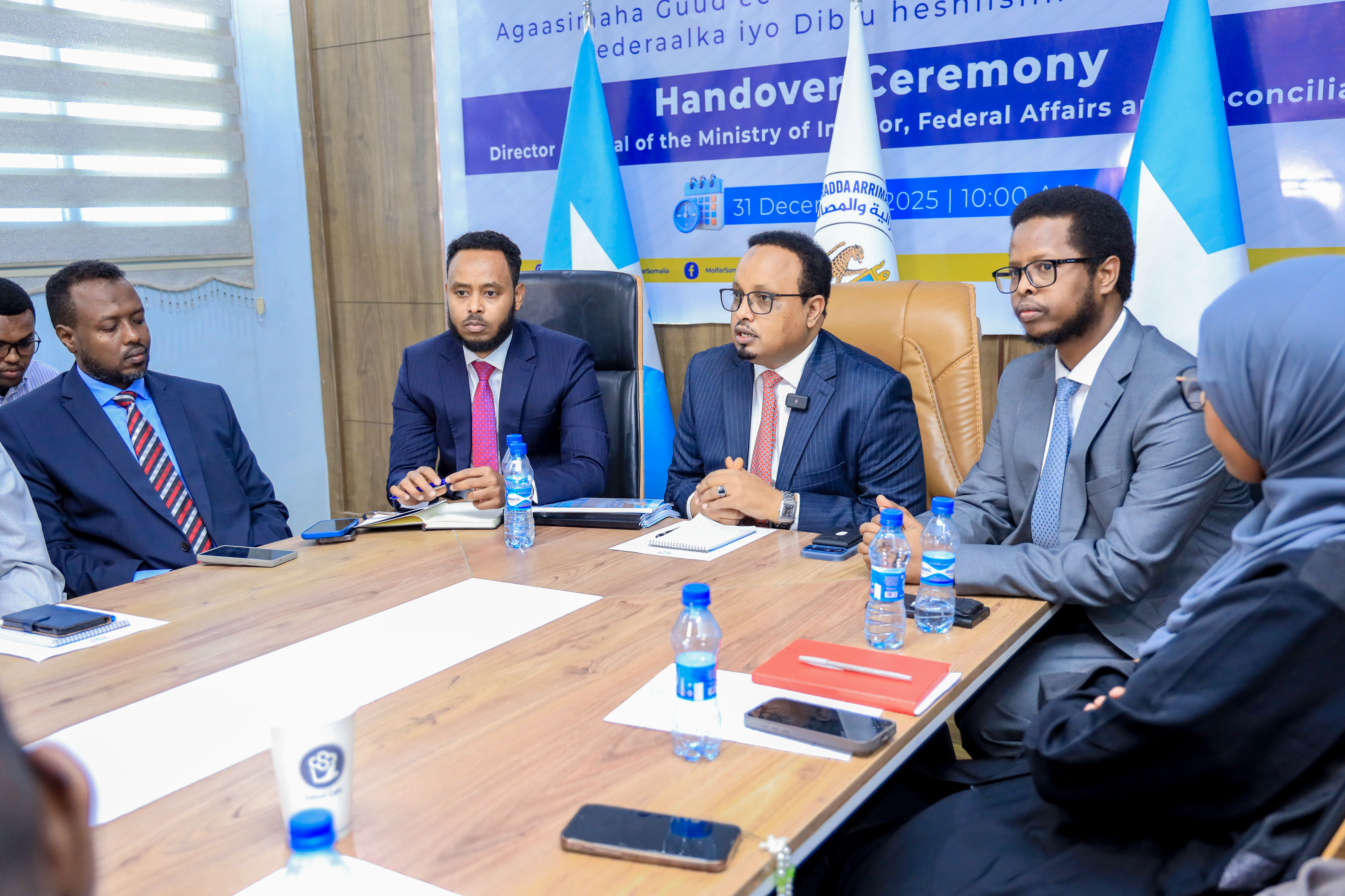 The leadership and staff of the Ministry of Interior, Federal Affairs and Reconciliation welcome the Incoming Director General and express their full support to him as he takes on his new role, while also conveying sincere appreciation to the outgoing Director General for his commitment, leadership, and service to the institution and the Somali people.