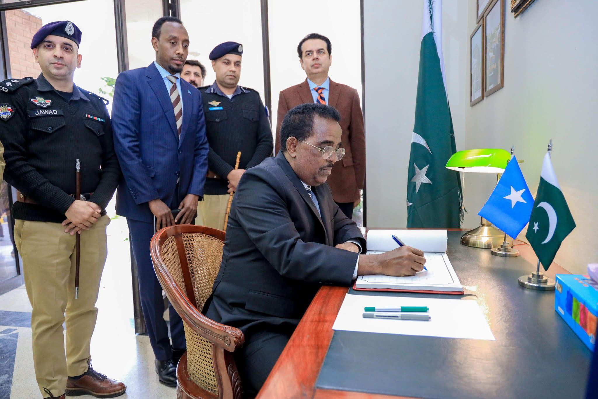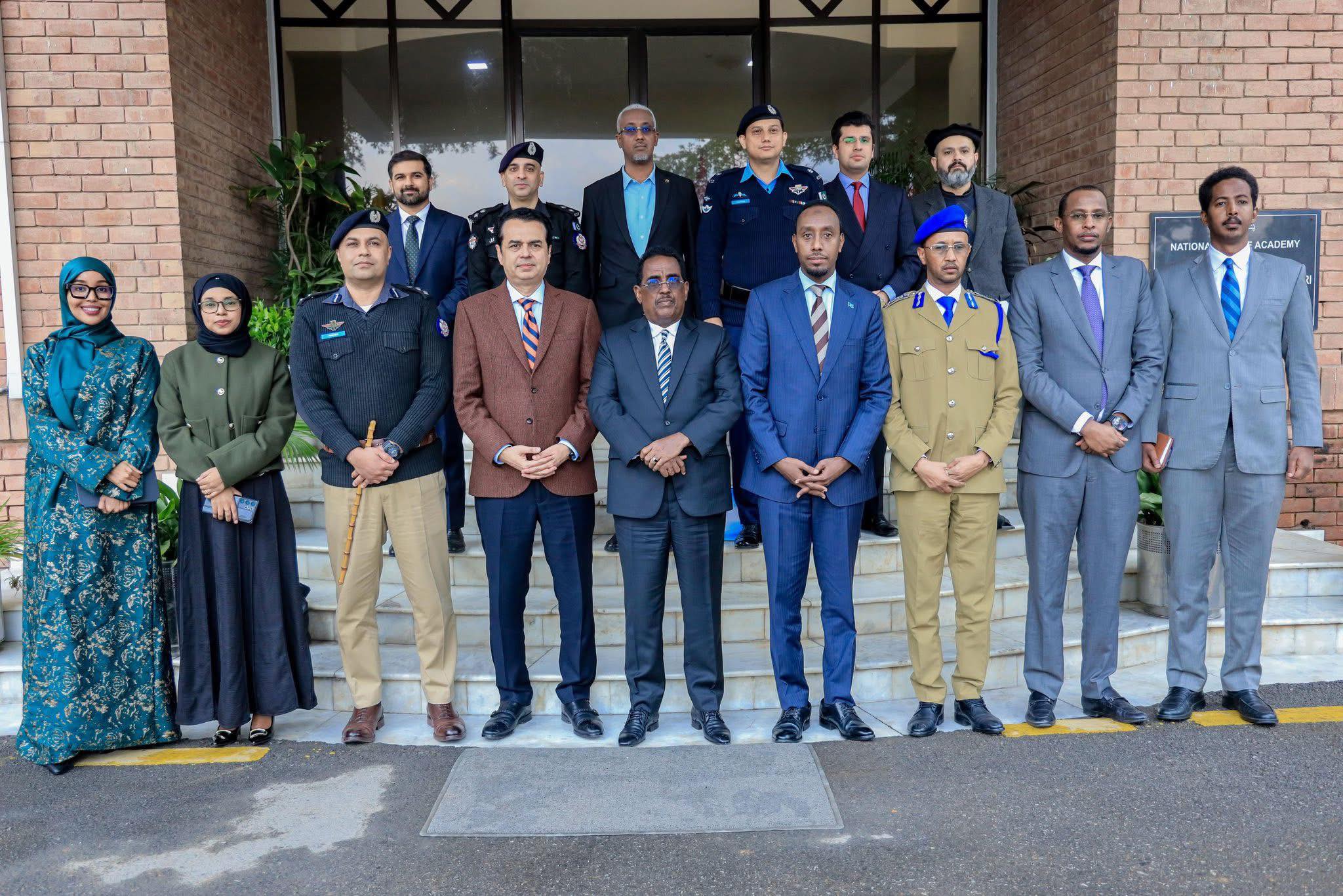 The Minister of Interior, Federal Affairs, and Reconciliation H.E. Ali Yusuf Ali Hosh, alongside General Osman Abdullahi Mohamed (Kaniif), Deputy Police Commissioner of the Somali Police Force, visited the Pakistan Police Academy as part of the official programme.